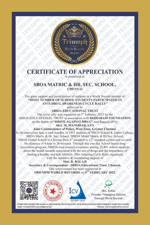 Dharshan of 6 A was honoured by Thiru Sekar Babu, Minister of Charitable Endowments of Tamil Nadu for achieving the Guinness Records.