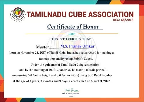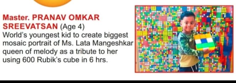 World's youngest kid to create biggest mosaic portrait of Ms. Lata Mangeshkar queen of melody as a tribute to her using 600 Rubik's cube in 6 hrs