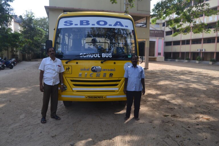 The school provides special bus services for students of kindergarten to std v through well trained drivers.