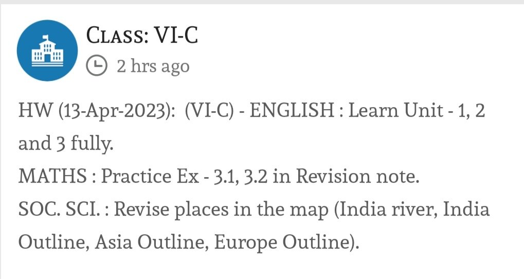 Home work SMS is sent to parents on a daily regular basis for the parents to follow it up.